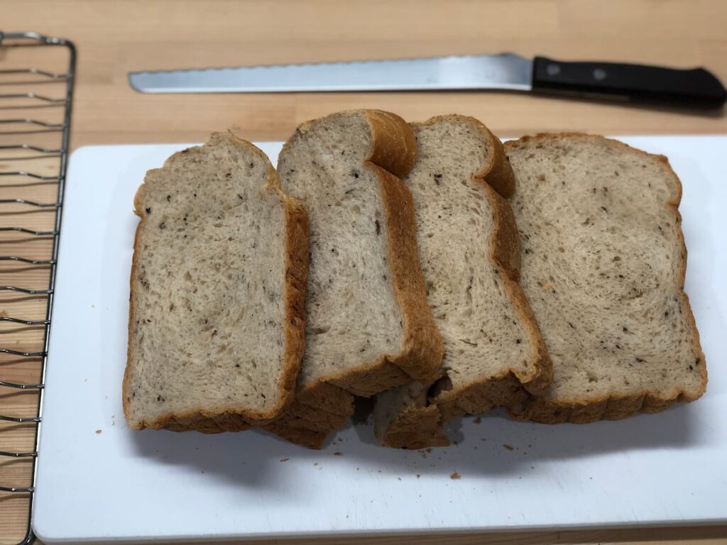 思っていた以上に粒感が残らなかった一方で、予想外の仕上がりになった今回の黒豆食パン。