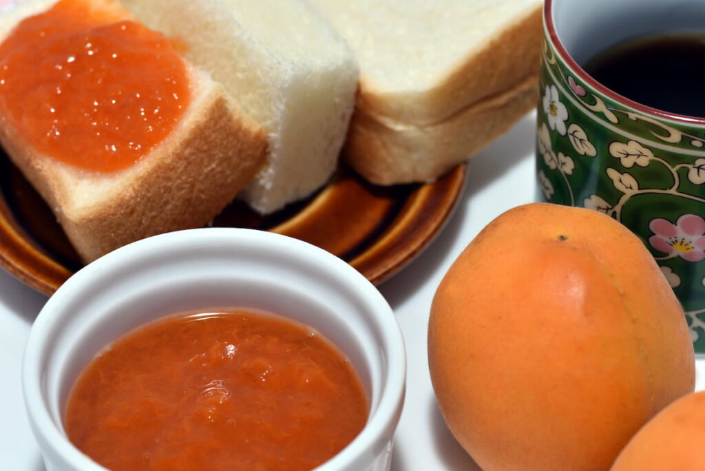 あんずには、水溶性の食物繊維(ペクチン)が含まれています。ジャムやコンポートにしたときにとろみが出やすいのは、このペクチンによるものです。