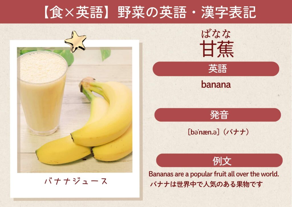 バナナは漢字で 「甘蕉(かんしょう/または ばなな)」 と書きます。
