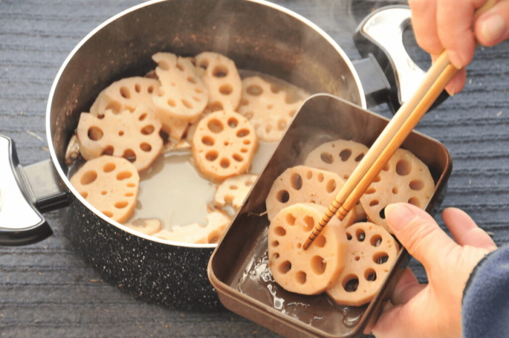蓮根は「歯ごたえを残す」か「柔らかく含ませる」かで火加減が変わります。