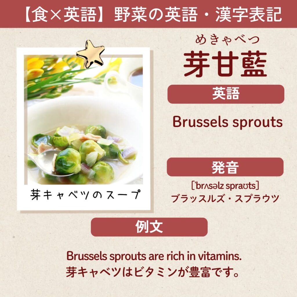 「芽」は若芽の意、「甘藍」はキャベツの古名で、「小さなキャベツの芽」という意味が込められています。