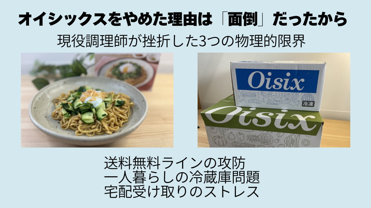 TOPオイシックスをやめた理由は「面倒」だったから。現役調理師が挫折した3つの物理的限界 オイシックス(Oisix)の評判を調べていると「ひどい」「やめた」という言葉が目に入り、不安になりますよね。結論から言うと25年以上厨房に立ってきた現役調理師の私も、実はオイシックスをやめています。味がまずかったから?質が悪かったから?…い... 2026.02.13TOPブログ