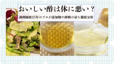 TOPおいしい酢は体に悪い?調理師歴25年のプロが添加物や砂糖の量を徹底分析 毎日「おいしい酢」を愛用しているけれど、「体に悪い」という噂を聞いて不安になっていませんか?「おいしい酢」はその飲みやすさから爆発的な人気を誇る一方で、甘み成分や血糖値への影響を心配する声も少なくありません。調理師歴25年のプロの視点から、... 2026.03.14TOPダイエット調味料
