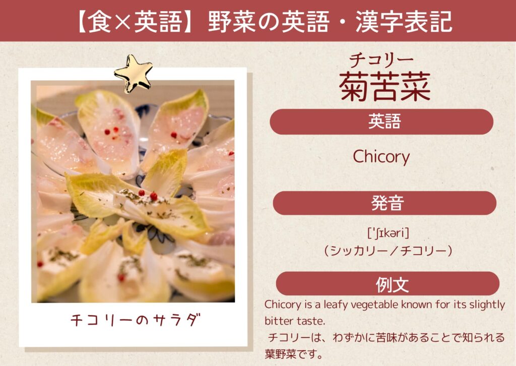 「chicory」は英語で、ヨーロッパ原産の苦味のある野菜全般を指します。