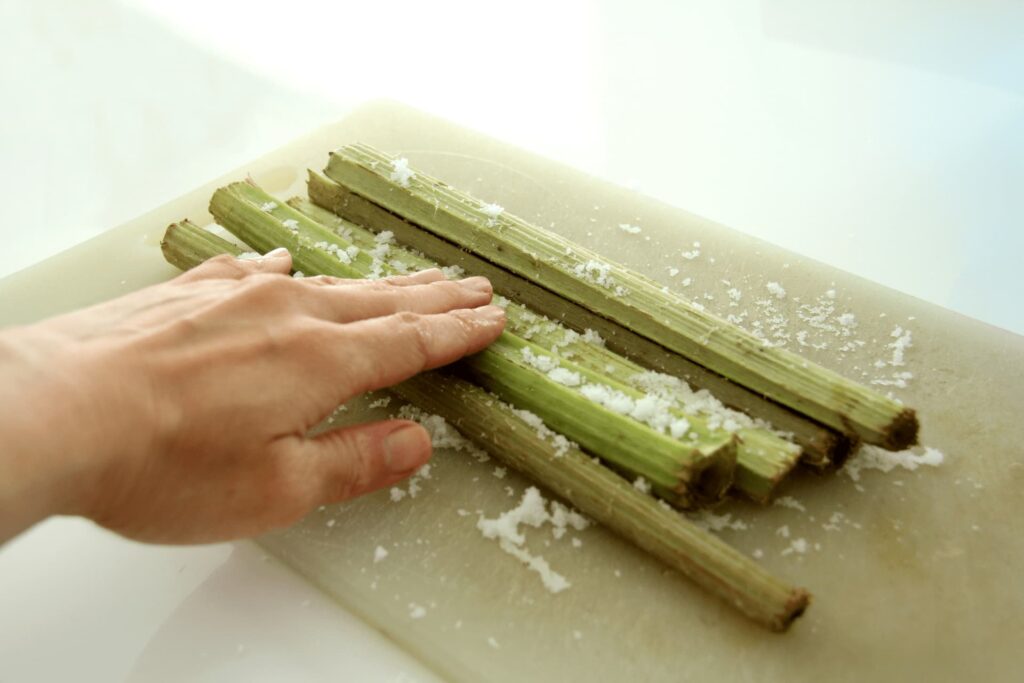 板ずりは「えぐみを抜くための準備」。香りよく仕上げるコツです。