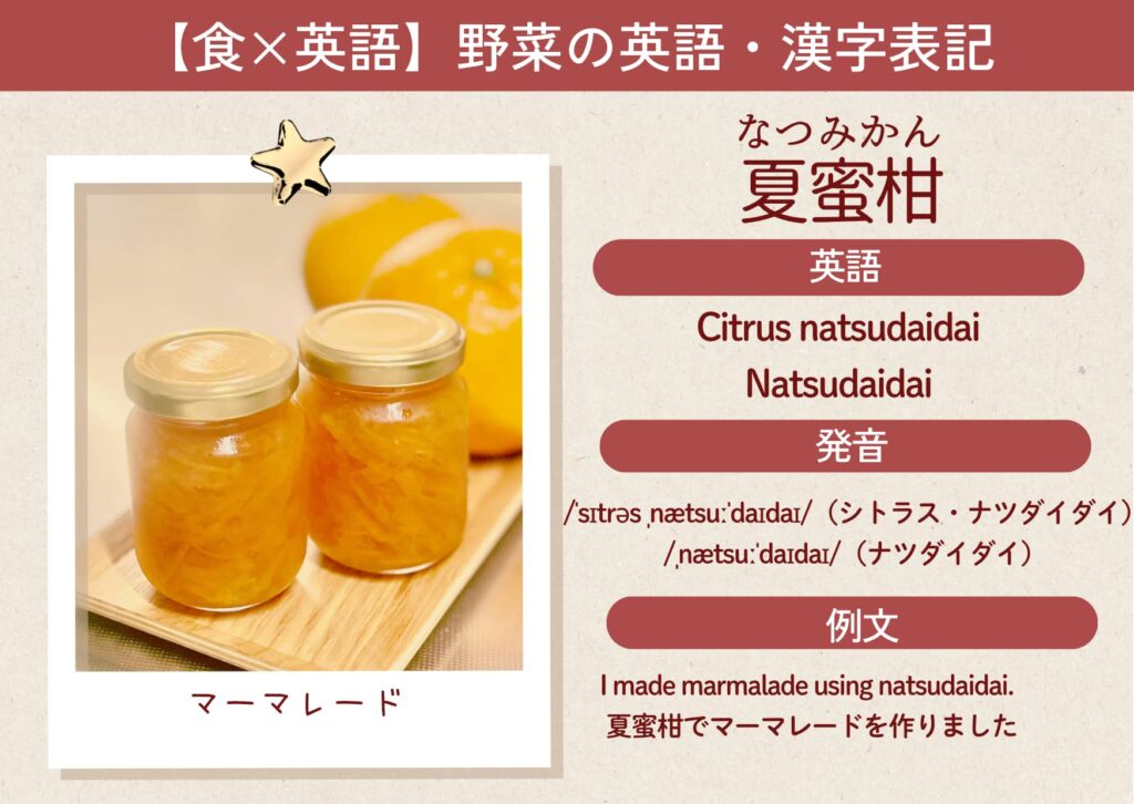 - 「natsudaidai」は日本語の「夏橙(なつだいだい)」をそのままローマ字にした表記で、英語圏でも使われています。