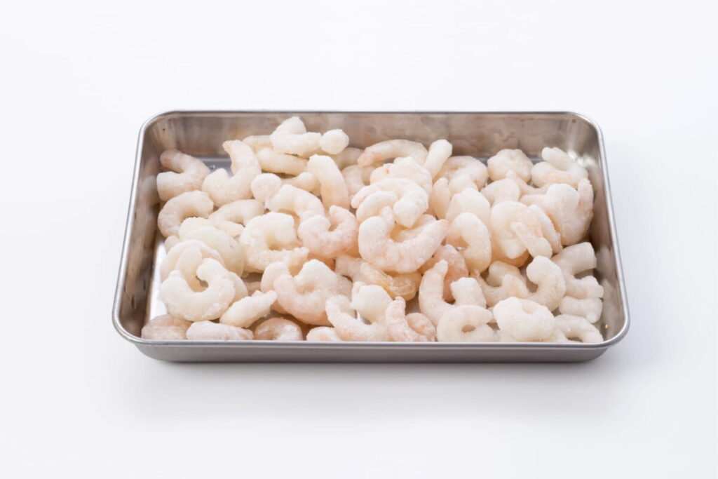 冷凍海老の表面には、乾燥や酸化を防ぐための「グレーズ」と呼ばれる氷の膜がついています。