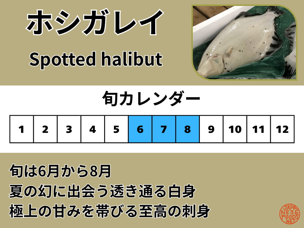 | ホシガレイ | マツカワと並ぶ幻の高級品。夏の刺身として板前が最も欲しがる、気品溢れる白身です。 |