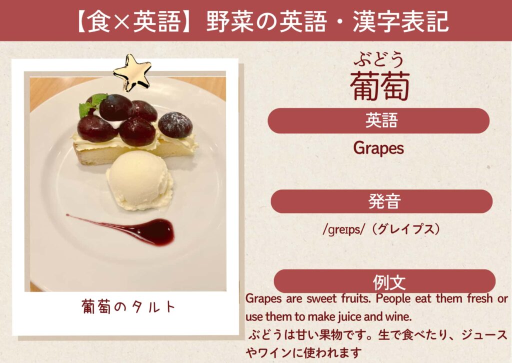(ぶどうは房状に実る甘くてジューシーな果物で、生食のほか、ジュースやジャム、ワインづくりにも使われます。)