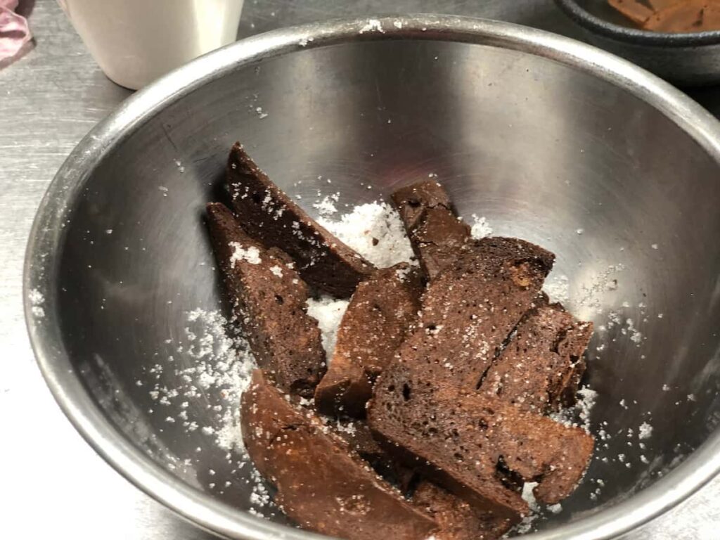 ホームベーカリーで膨らまなかったパンは、密度が高く、水分が抜けている状態です。 実はこれ、「カリカリ食感の料理」にするには最高の素材なのです。