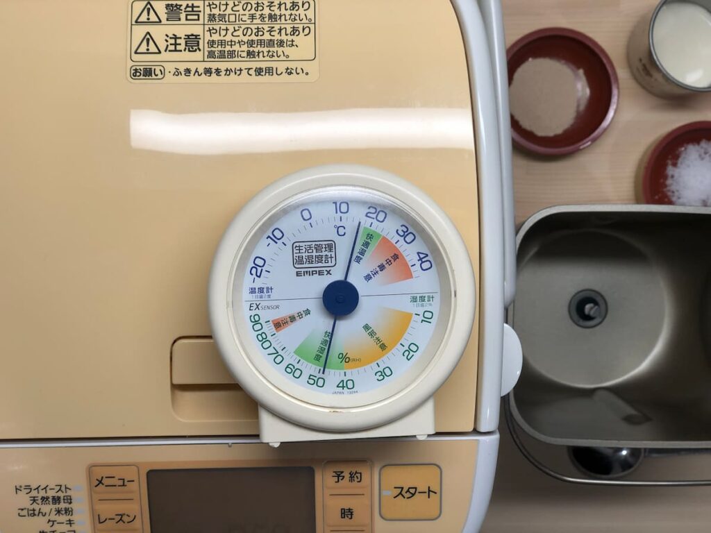 夏場は水温が高くなりすぎ、冬場は低くなりすぎることがあります。水温は25〜30℃が理想です。夏は冷蔵庫から出したての水、冬は少し温めた水を使用してください。塩とイーストが接触した