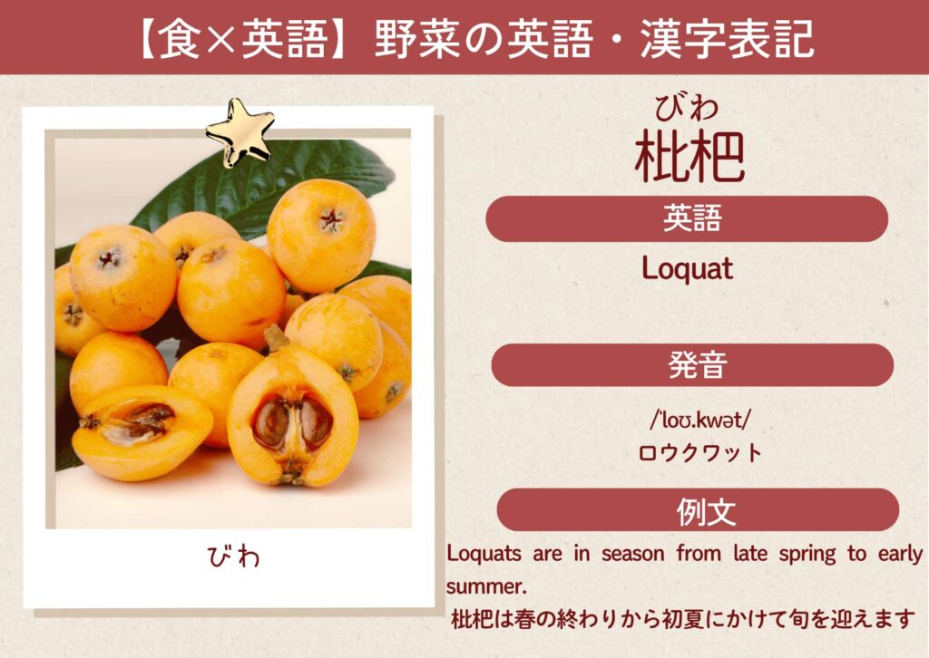枇杷(びわ)の旬はいつ? 英語では何と呼ばれる? 種に含まれる成分で食中毒になるって本当?