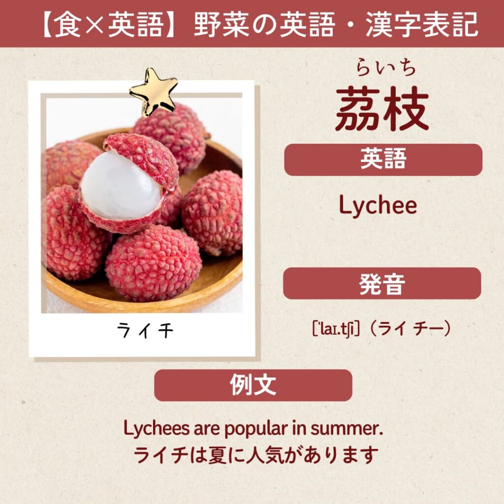 英語/漢字/日本語表記 ライチ Lychee 野菜