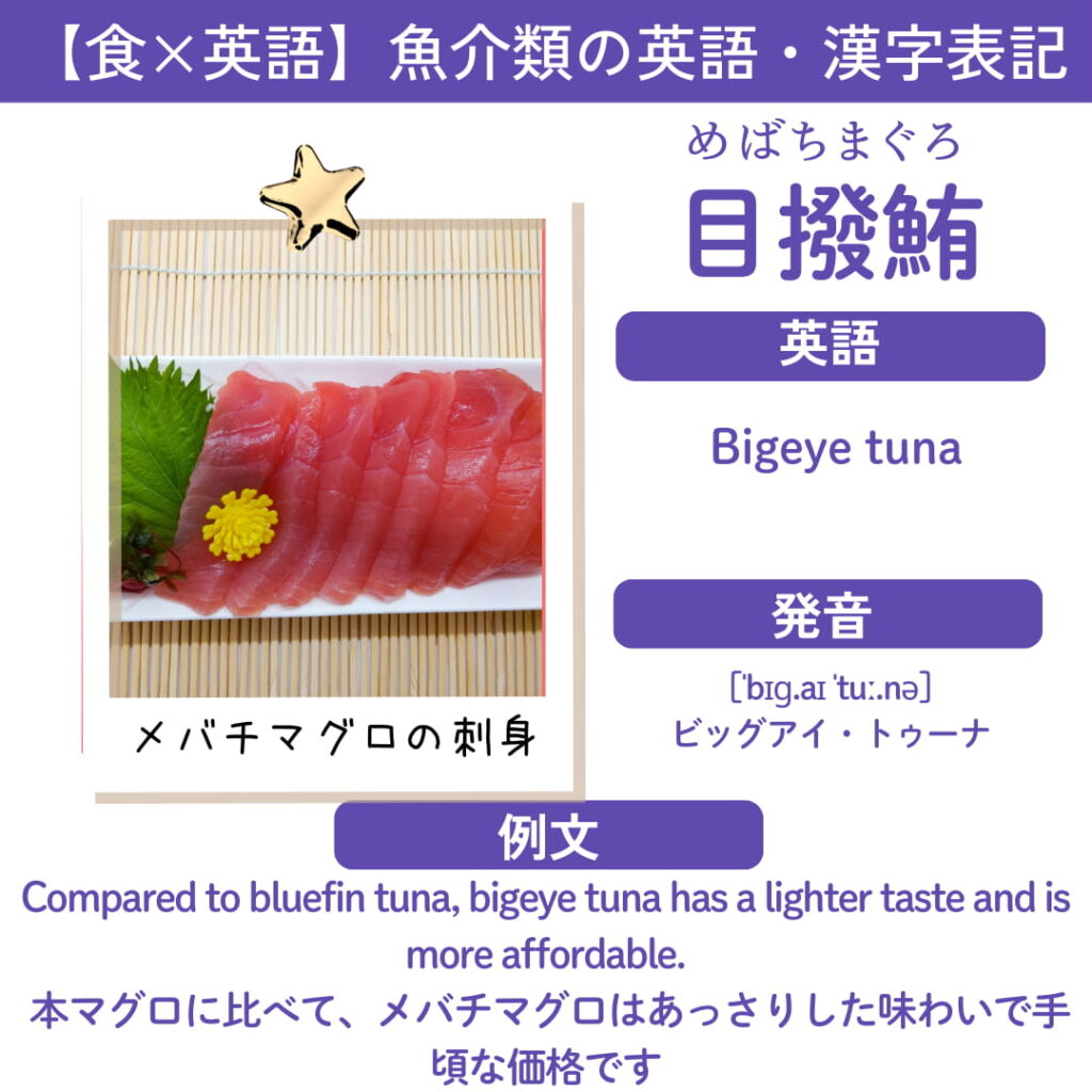 • 漢字表記:目撥鮪(めばちまぐろ)
