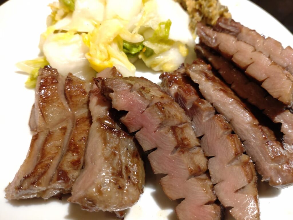牛ハラミ焼き:赤身の旨味が明太子に負けないおかずになる