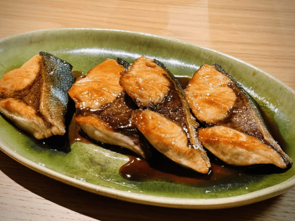 照り焼きの「醤油、砂糖、みりん」を煮詰めた甘辛いおかずは、明太子の「塩分」と対照的な位置にあります。この「甘辛さ」と「塩辛さ」の対比が、強い満足感を与えます。また、鰤の身は繊維質がしっかりしており、食べ応えも十分。明太子はもはや「薬味」のような感覚で、鰤の濃厚な味に変化をつける役割を果たします。タレのコクと明太子の刺激が重なることで、味の完成度が一段上がります。