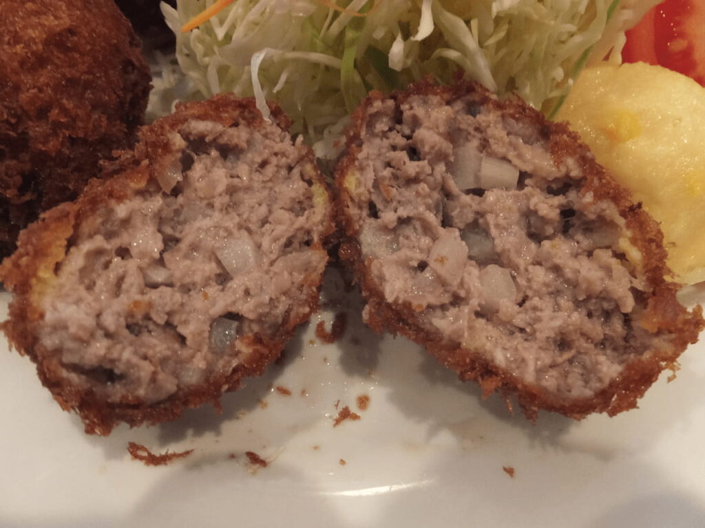 メンチカツ:肉汁が明太子を最高のソースに変える
