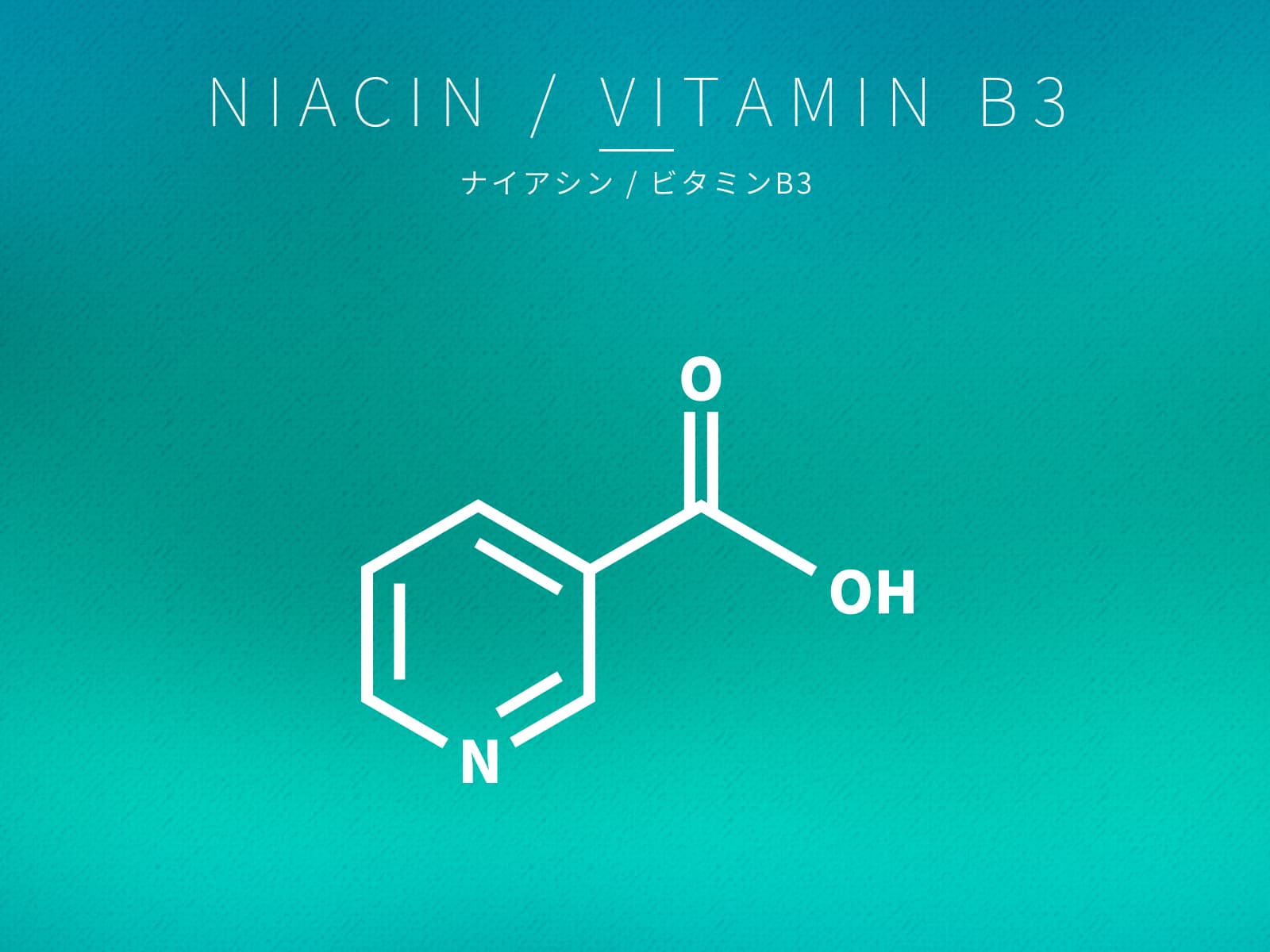 ナイアシンは、ビタミンB群のひとつで、「ビタミンB3」とも呼ばれています。