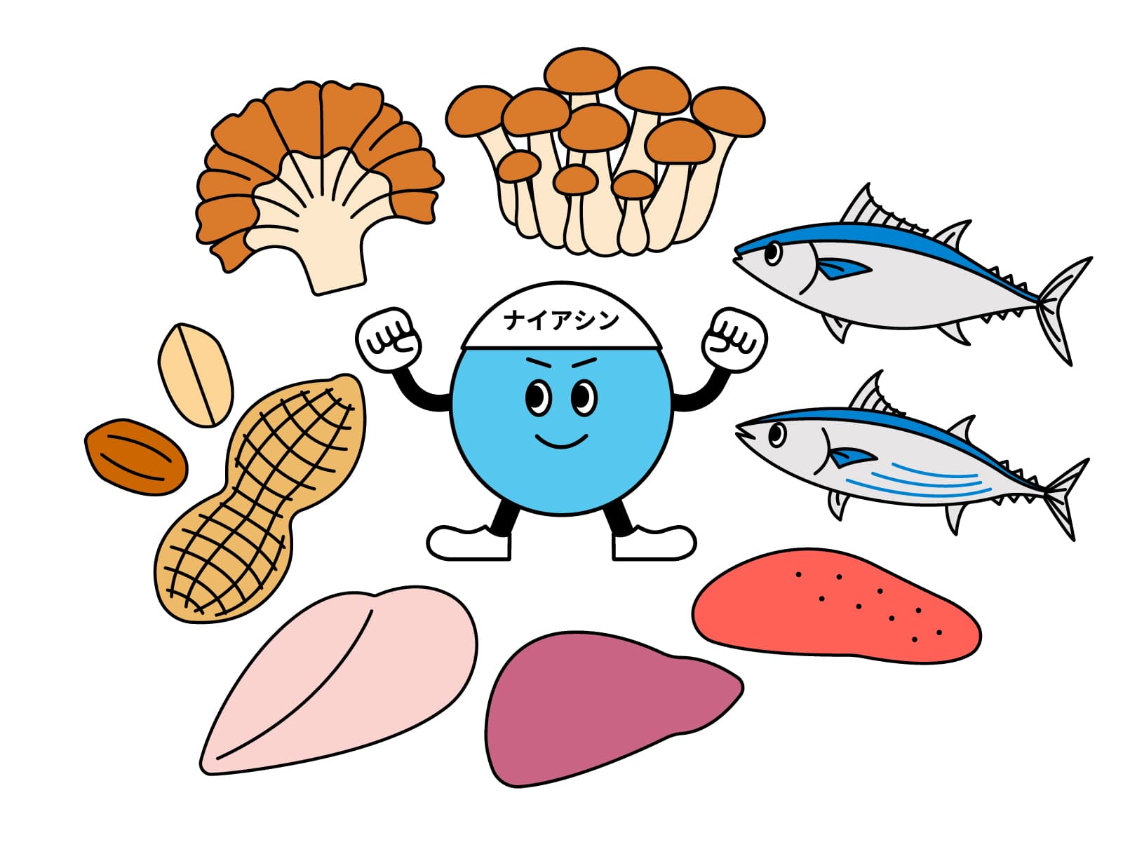 偏った食生活や極端なダイエットなどで、ナイアシンを含むビタミンB群が不足しないよう、毎日の食事からさまざまな食材を取り入れることが大切とされています。