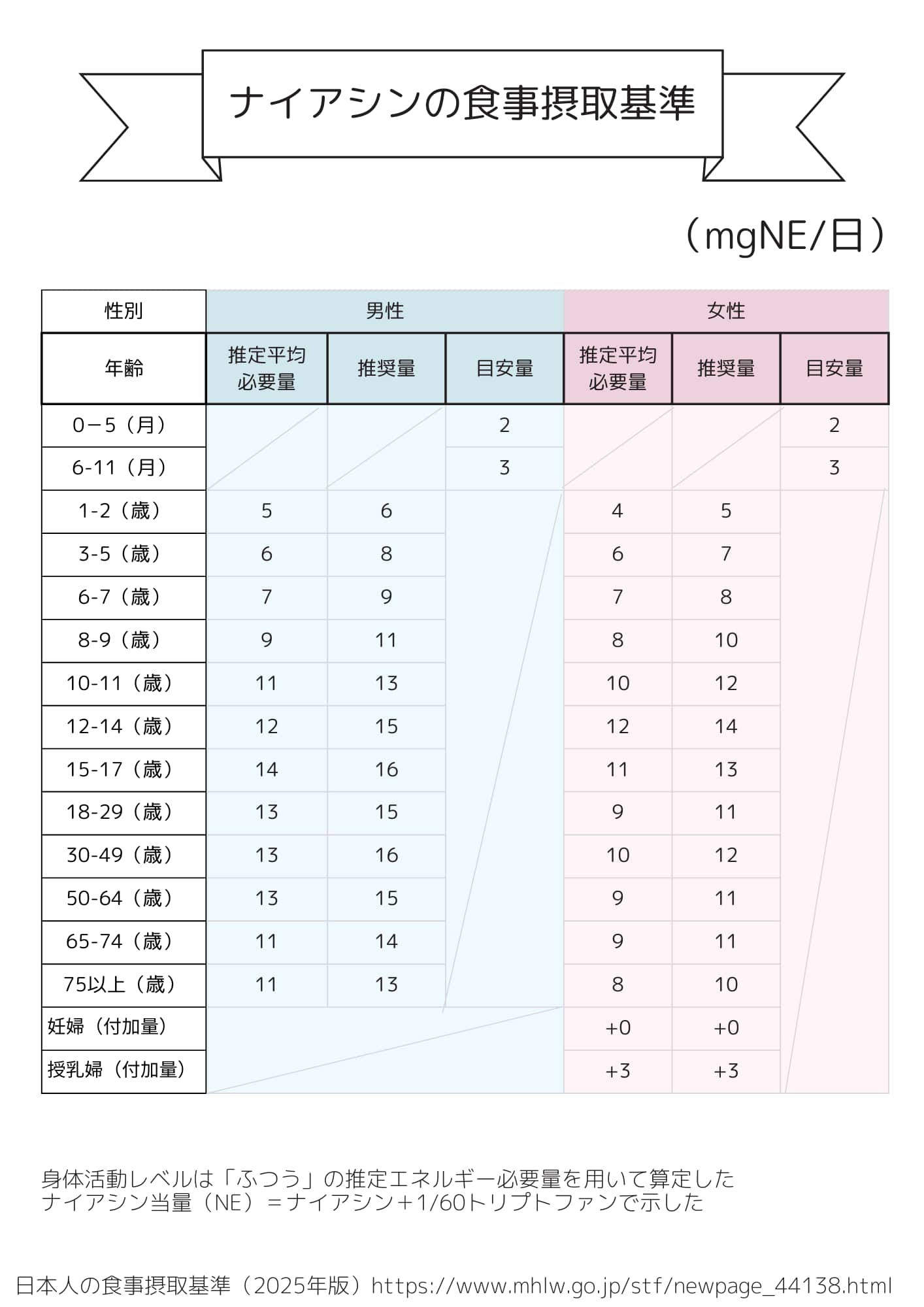2025年版ナイアシンの推奨摂取量(日本人の食事摂取基準)