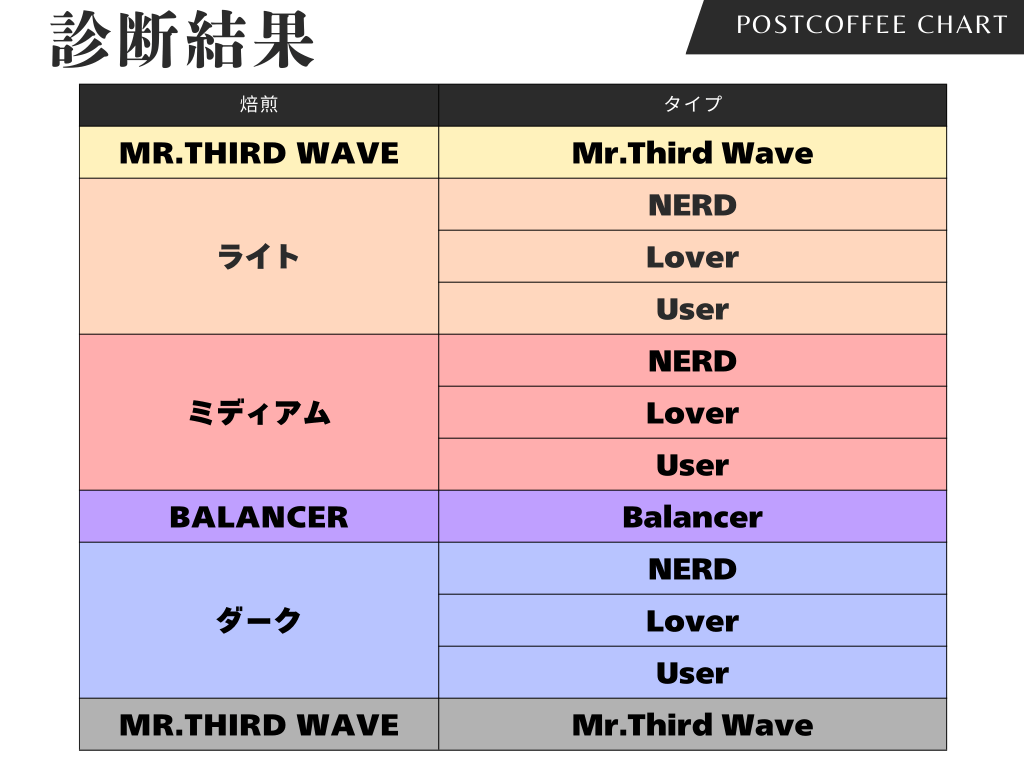 ポストコーヒーの診断は「当たる/外れる」という考え方自体が少しズレています。正しくは、“診断はあなたの好みの方向性を12タイプに分類するだけのツール”です。