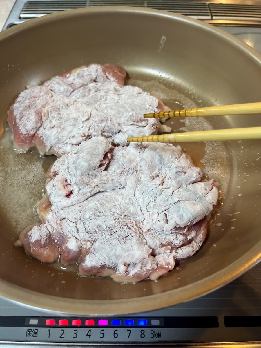 脂を拭き取る際、お肉をフライパンに強く押し付けるのはNGです!旨味たっぷりの肉汁まで一緒に絞り出してしまい、パサパサの原因になります。フライパンを少し手前に傾け、端に溜まった脂だけをペーパーでサッと吸い取るのが美味しく仕上げるコツです。