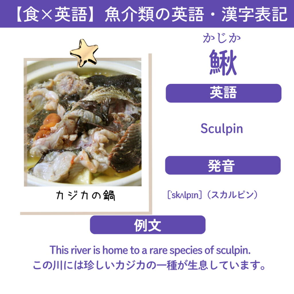 | 英語 | Sculpin Cottus spp.(学名) |