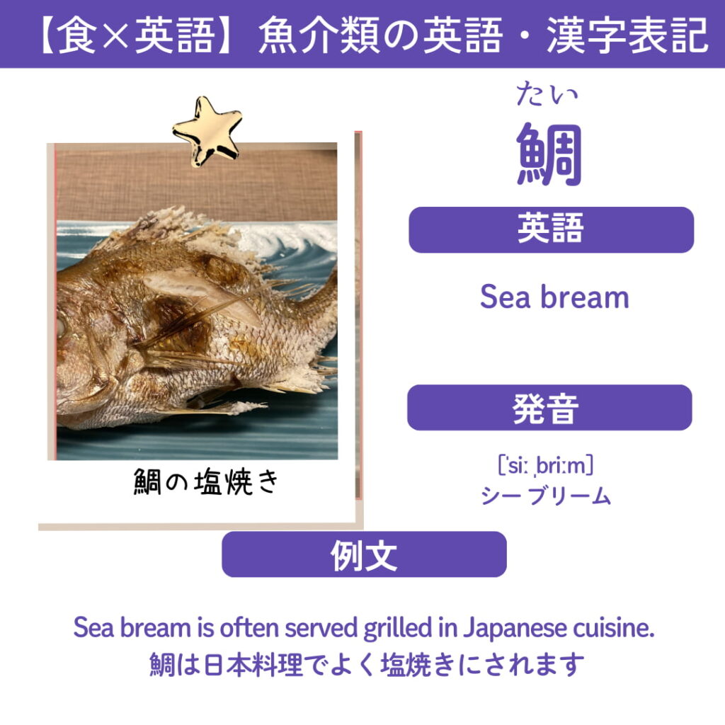 鯛は見た目の華やかさと上品な味わいから、日本料理に欠かせない高級魚。祝い事やおもてなしの席でよく使われ、刺身から塩焼き、煮付けまで幅広い料理に活躍します。この記事では、旬の時期や特徴、相性の良い食材と調理法、そして英語表記「Sea bream」まで詳しく解説します。