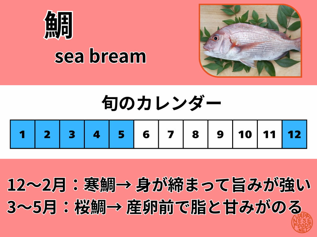 鯛の旬は12月から5月です