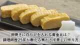 ※焦がさず美しく巻くための具体的な手順と、失敗しない比率についてはこちらの『卵焼きに白だしを入れる黄金比は?調理師歴25年が教える焦がさず美しい作り方』を参考にしてください。