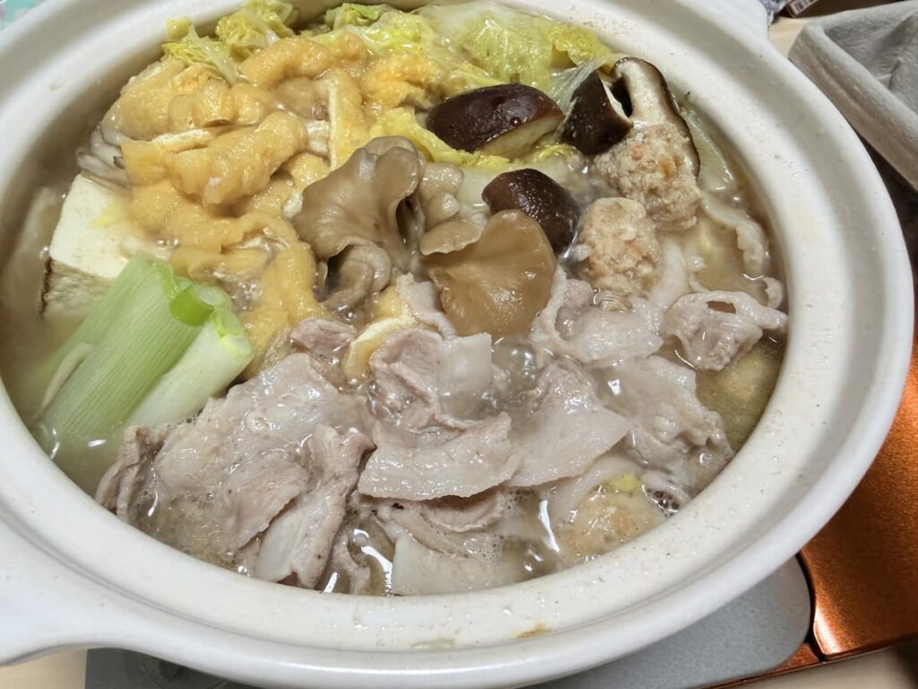 最初に鍋のつゆを味見した際、「少し味が濃いかな?」と感じる程度が正解です。具材を入れて煮込むと野菜からたっぷりと水分が出ます。そのため、食べる頃には出汁の旨味が効いた丁度良い濃さに仕上がります。