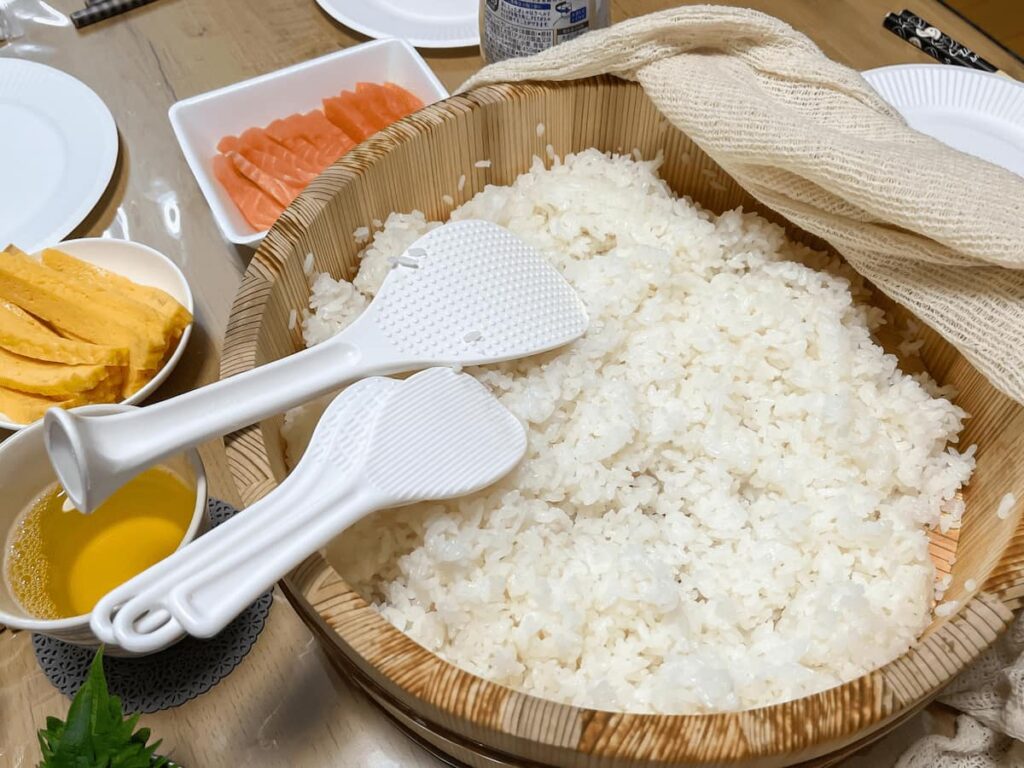 - ご飯は炊きたてで混ぜる(温度が高いほど酢がよくなじむ)