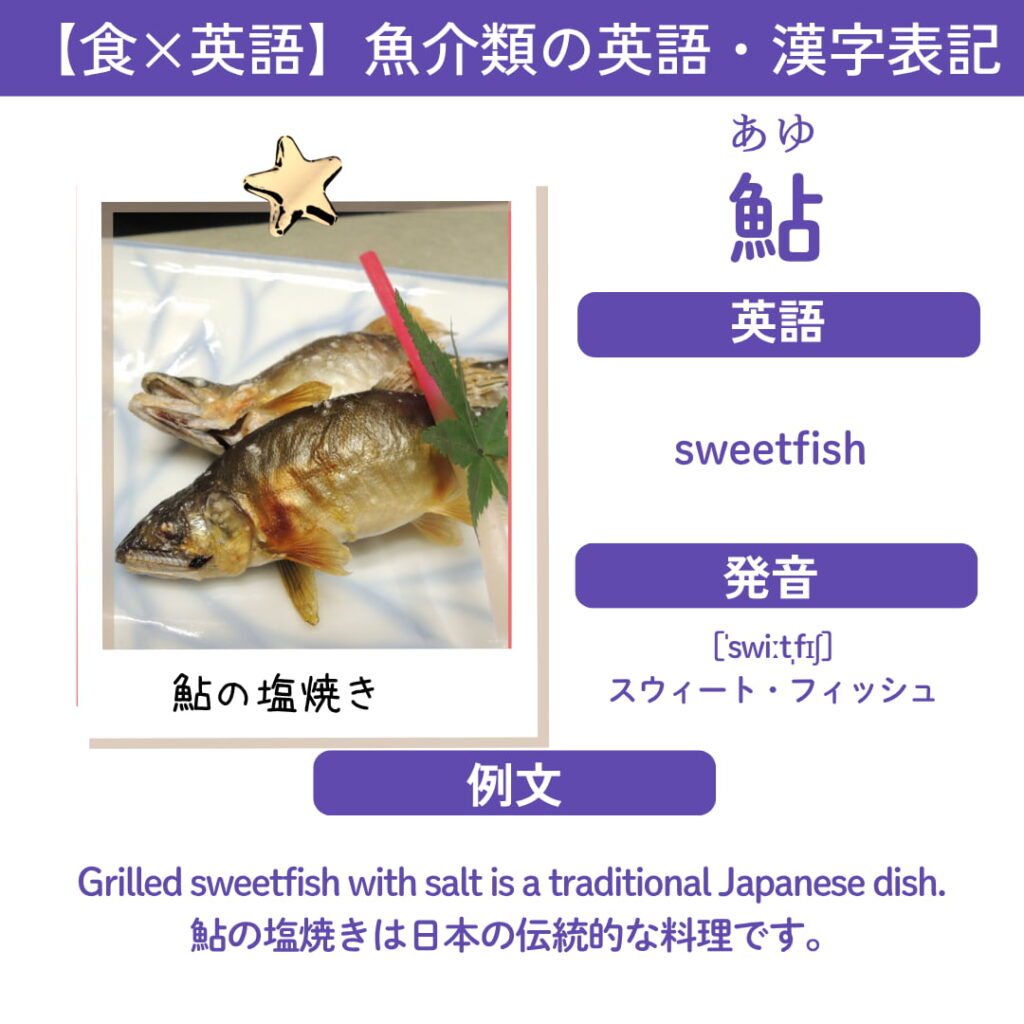 | 英語表記(一般) | sweetfish(スウィートフィッシュ) |