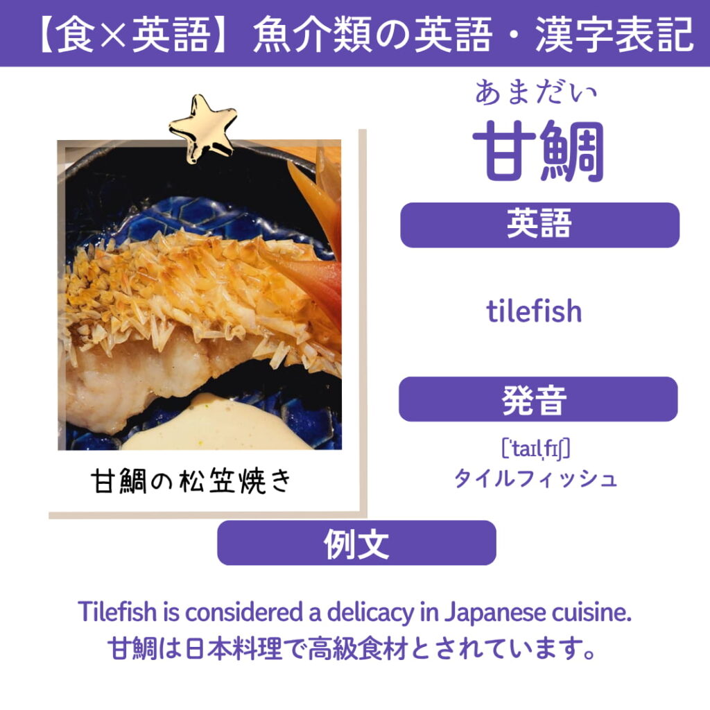 | 英語表記(一般) | tilefish(タイルフィッシュ) |