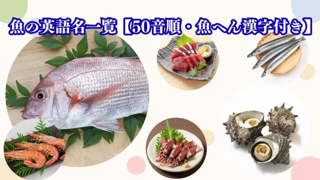 この記事では、日本でよく食べられる魚の英語名と魚偏の漢字を50音順の一覧表で完全網羅しています。寿司ネタの英語表現や、外国人への説明に使える実践的なフレーズも紹介するので、すぐに活用できます。魚の英語名を覚えたい英語学習者の方にも最適な内容です。