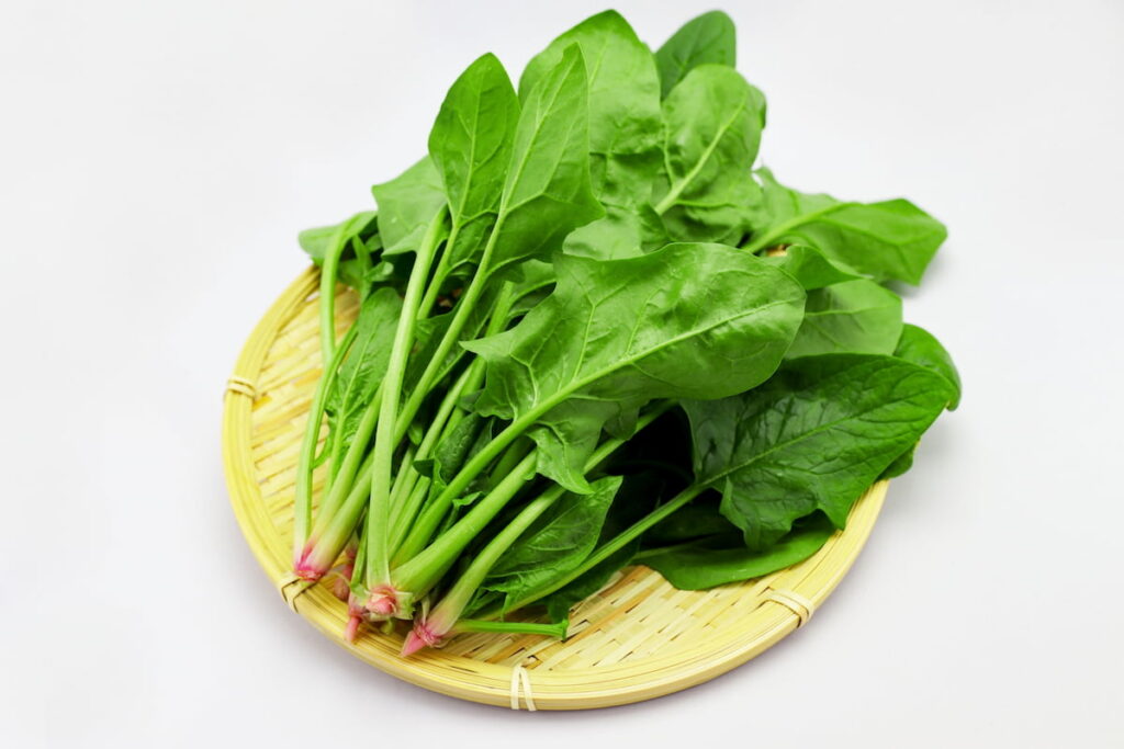 おひたし、胡麻和え、ソテー、味噌汁、炒め物、グラタン、スムージー。アクの成分シュウ酸が多いため、生食は避けて茹でてから調理するのが基本です。茹でる時間は30秒~1分で十分。油と一緒に調理するとβカロテンの吸収率が高まります。根元は十字に切り込みを入れると火が通りやすくなります。