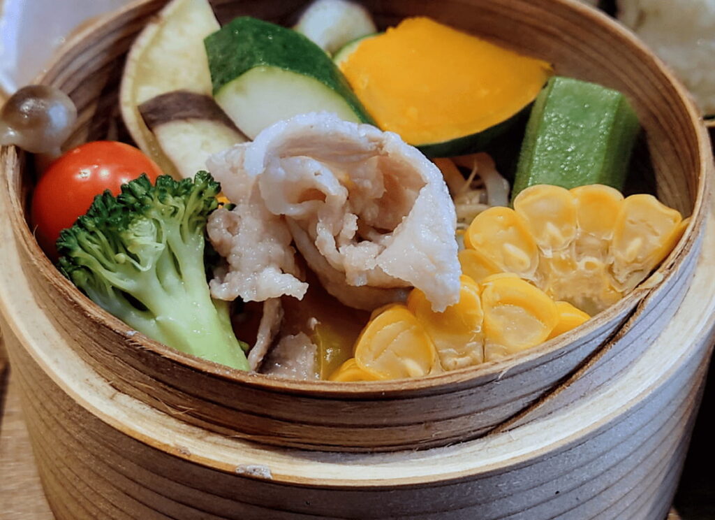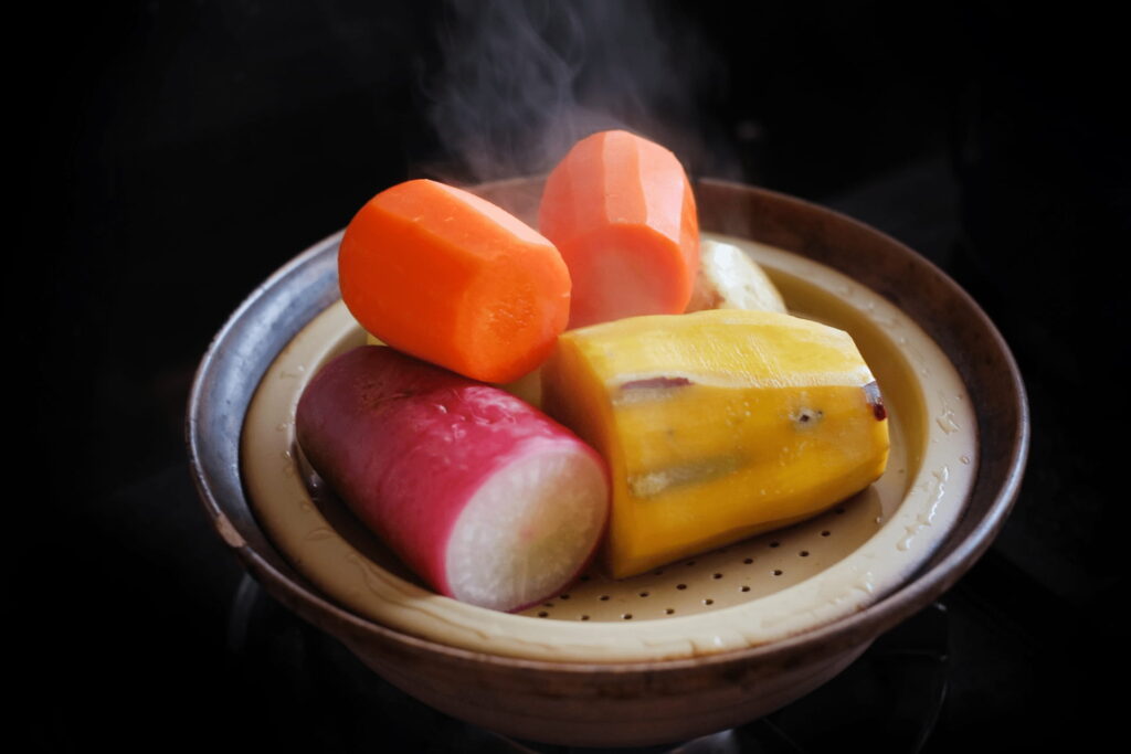 蒸物とは熱い蒸気でじっくりと火を入れ、旨味と水分をそのまま食材に閉じ込める調理法です。食材を直接湯に触れさせず、蒸気で均一に加熱することができるため、「ふっくら」「なめらか」「みずみずしい」仕上がりになるのが最大の特徴です。