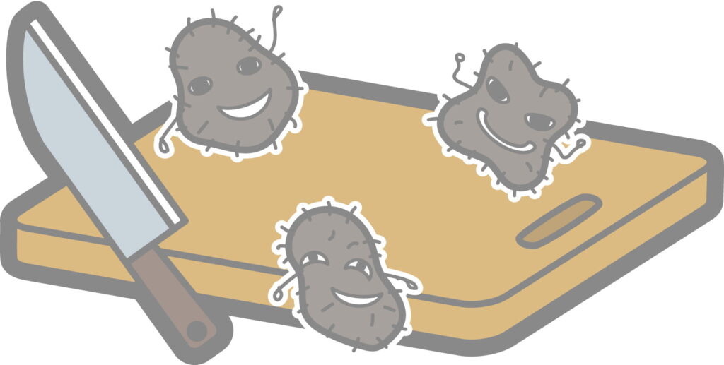 また、調理中に手指や調理器具(まな板・包丁など)を介して二次汚染が起こるケースも少なくありません。たとえば、魚をさばいた後に十分に洗浄・消毒せずに野菜などを切った場合、腸炎ビブリオが別の食材に移ってしまいます。