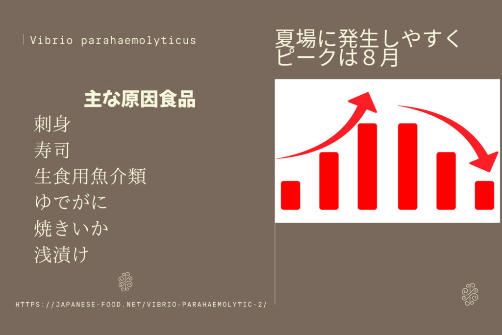 腸炎ビブリオは魚介類を扱う際の温度管理と衛生管理が不十分な場合に発生しやすく、夏場に特に注意が必要です。