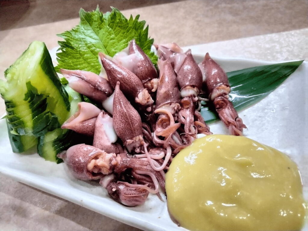 蛍烏賊の酢味噌酸味が旨味を引き立てる