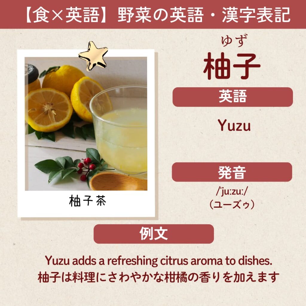英語では日本語と同じく「Yuzu」と表記され、世界的にYuzuの名で通じる和柑橘の一つです。海外の高級レストランやパティスリーでも「Yuzu-flavored」や「Yuzu sauce」といった表現が使われており、日本独自の香酸柑橘として注目されています。